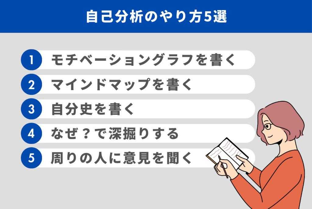自己分析を行う際は、次の5つの方法を試してみましょう。