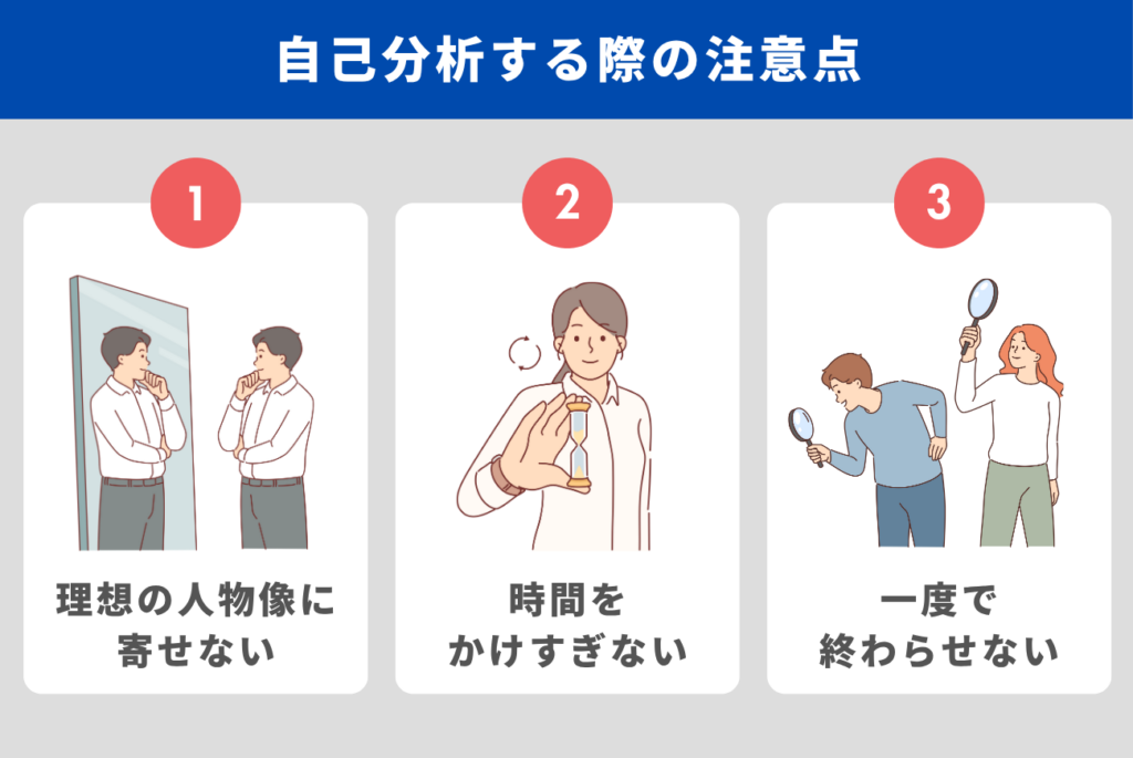 自己分析を行う際は、以下の3点に気をつけましょう。